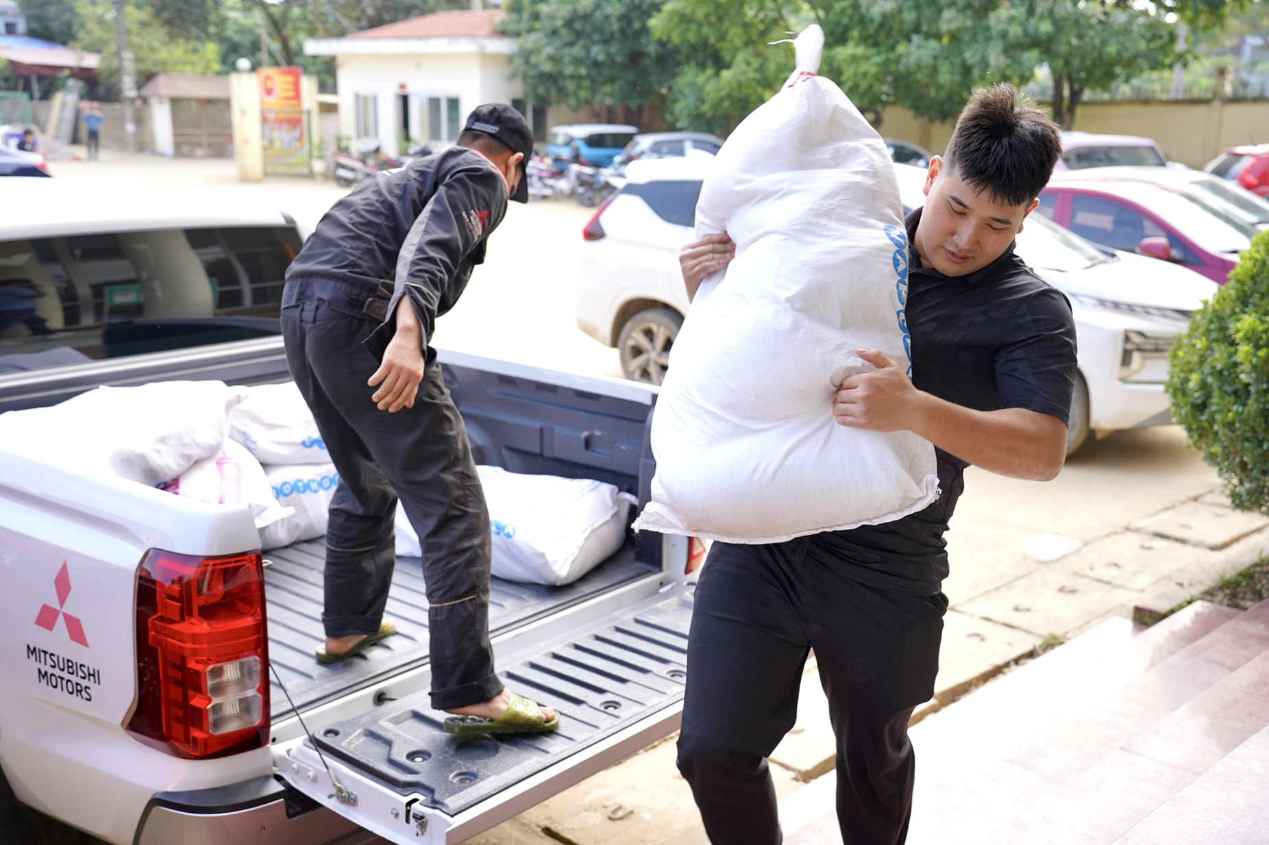 With the support of the Red Cross and local authorities, Mitsubishi Motors Vietnam and Dealers directly delivered essential supplies and cash donations to nearly 400 households in severely affected communes. In Thanh Hoa, through the connection of Hong Duc University, the program also provided support to students whose families were seriously impacted by the typhoon.