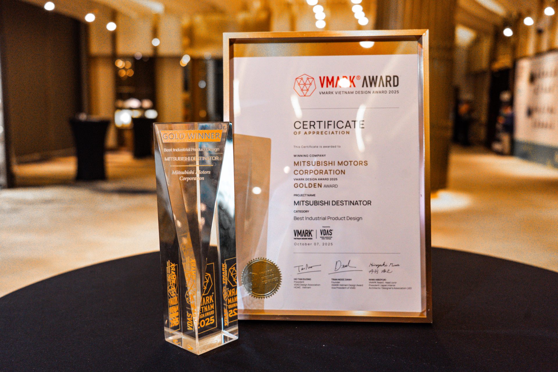 Tokyo, ngày 8 tháng 10 năm 2025 – Mẫu SUV hoàn toàn mới Destinator vinh dự đạt giải Vàng ở hạng mục Thiết kế Sản phẩm Công nghiệp xuất sắc nhất tại giải thưởng VMARK Vietnam Design Awards 2025. Đây là năm thứ ba liên tiếp Mitsubishi Motors nhận được giải thưởng danh giá này, sau thành công của XFORCE năm 2023 và Triton năm 2024.