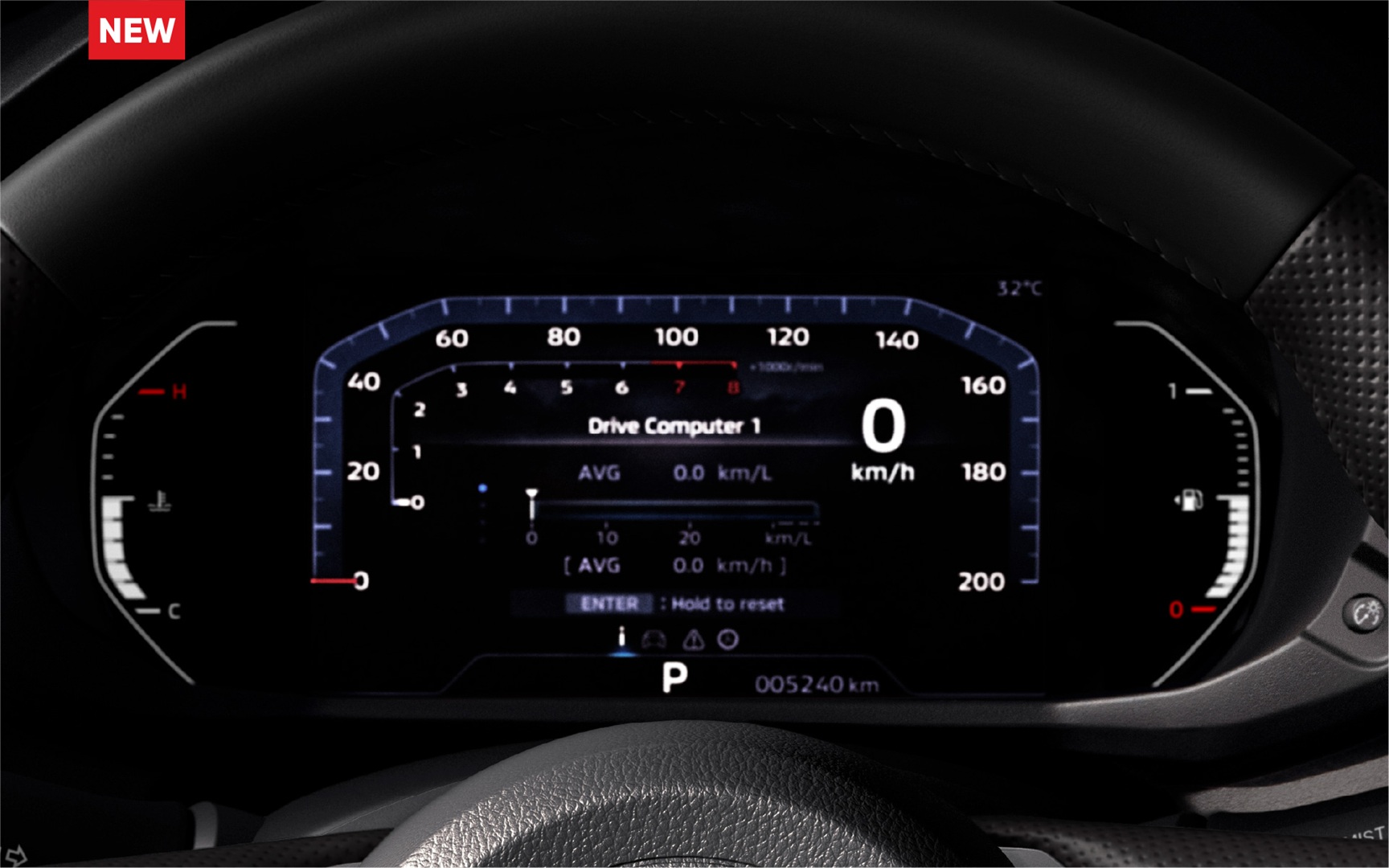 New 8-inch digital instrument cluster clearly displays all operating parameters.