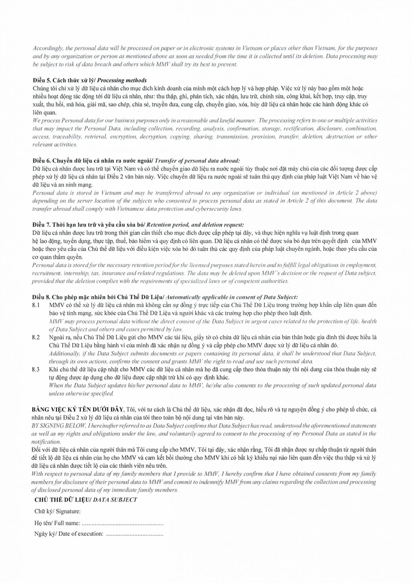 THÔNG BÁO VỀ VIỆC XỬ LÍ DỮ LIỆU CÁ NHÂN