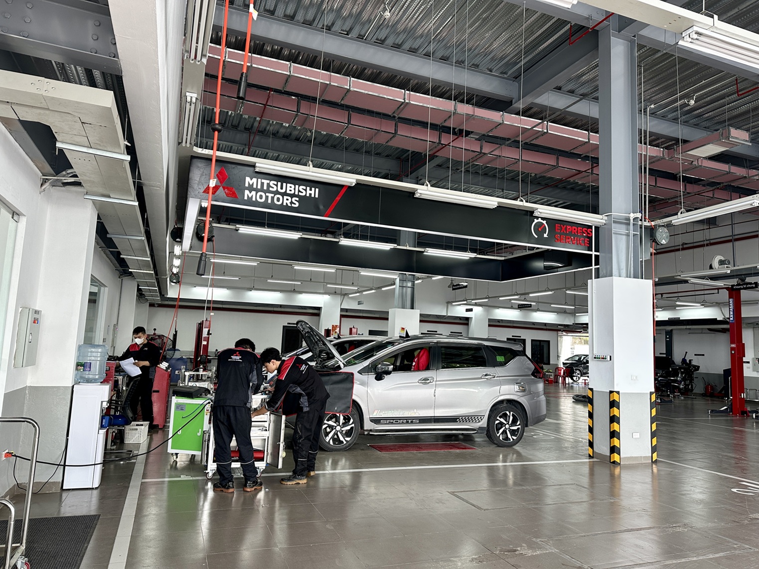 Xưởng dịch vụ rộng rãi với đến gần 2,500 m2, 32 khoang phục vụ sửa chữa với hệ thống máy móc và thiết bị tiên tiến. Cùng với đó, đội ngũ kỹ thuật viên giàu kinh nghiệm được đào tạo bởi Mitsubishi Motors Việt Nam sẵn sàng cung cấp các dịch vụ bảo hành, bảo dưỡng, sửa chữa chất lượng cao cùng phụ tùng chính hãng.